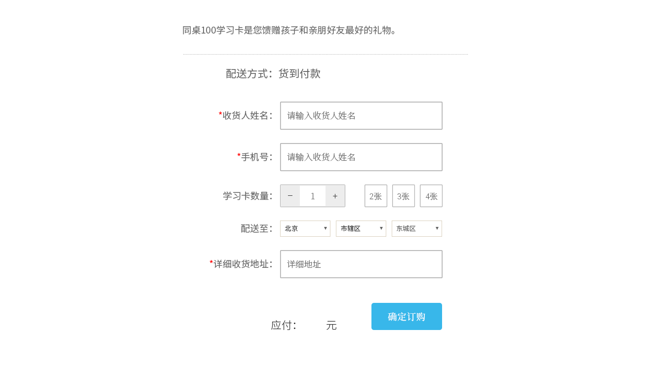在首页的广告图右下角有个按钮,为“在线订购”,点击进入同桌100学习卡详情页面。