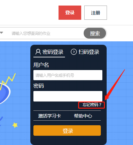 在未登录的状态下,需要您输入激活的用户名输入密码,点击激活即可成功激活学习卡!