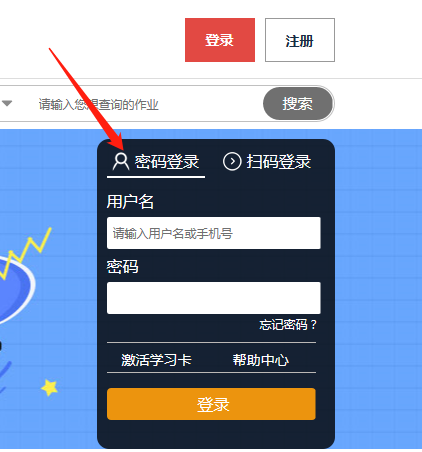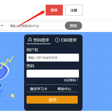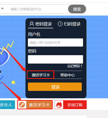 首页登录框内和轮播图右侧下方分别都有激活学习卡功能入口,点击进入激活学习卡页面。