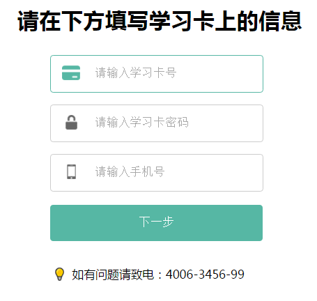 您也可以拨打客服热线来订购学习卡,客服电话:4006-3456-99。
