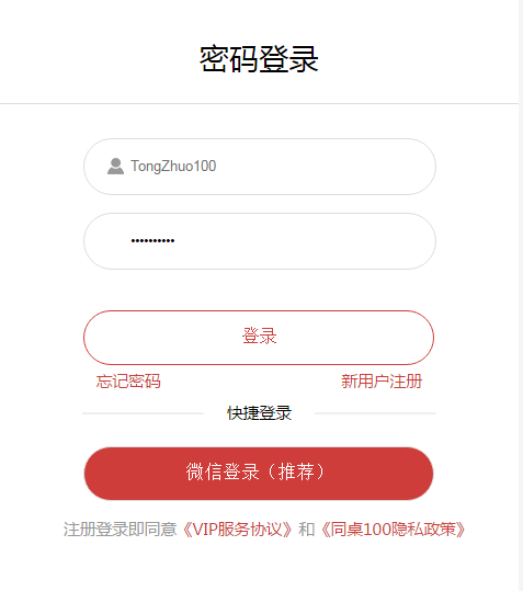 ①您可以通过访问同桌100首页 (www.tongzhuo100.com),直接在页面的右上方"用户登录"框登录。