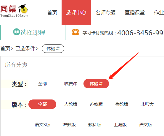 进入选课中心,选择体验课类型,即可筛选出免费体验视频。