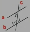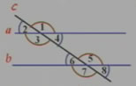 借助练习本上的横线格,画两条平行线被第三条直线所截。