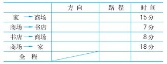 (1)根据上面的路线图,说一说小玲去书店和回来时所走的方向和路程,完成下表。