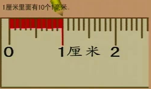2.用笔尖指着直尺上的小格数一数1厘米有多少毫米?