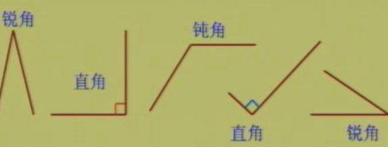 直角 比直角小的角是锐角 比直角大的角是钝角