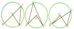 ,画出圆心角∠BOC和圆周角∠BAC,圆心角与圆周角有几种位置关系?