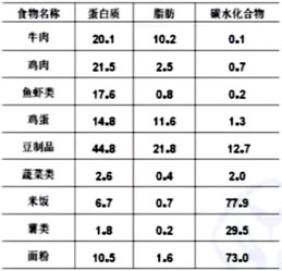 | 编号 | 菜名 | 热量/千焦 | 脂肪/g | 蛋白质/g |