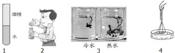 B.酒精和水混合后体积减小的实险,说明分子间有空隙