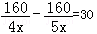 14.(2016•百色)A、B两地相距160千米,甲车和乙车的平均速度之比为4:5,两车同时从A地出发到B地,乙车比甲车早到30分钟,若求甲车的平均速度,设甲车平均速度为4x千米/小时,则所列方程是()