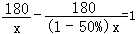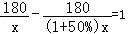 15.(2016•青岛)A,B两地相距180km,新修的高速公路开通后,在A,B两地间行驶的长途客车平均车速提高了50%,而从A地到B地的时间缩短了1h.若设原来的平均车速为xkm/h,则根据题意可列方程为()