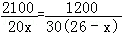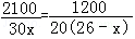 16.(2016•泰安)某机加工车间共有26名工人,现要加工2100个A零件,1200个B零件,已知每人每天加工A零件30个或B零件20个,问怎样分工才能确保同时完成两种零件的加工任务(每人只能加工一种零件)?设安排x人加工A零件,由题意列方程得()