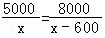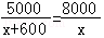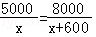 18.(2016•山西)甲、乙两个搬运工搬运某种货物,已知乙比甲每小时多搬运600kg,甲搬运5000kg所用时间与乙搬运8000kg所用时间相等,求甲、乙两人每小时分别搬运多少kg货物,设甲每小时搬运xkg货物,则可列方程为()
