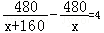 19.(2016•青海)穿越青海境内的兰新高铁极大地改善了沿线人民的经济文化生活,该铁路沿线甲,乙两城市相距480km,乘坐高铁列车比乘坐普通快车能提前4h到达,已知高铁列车的平均行驶速度比普通列车快160km/h,设普通列车的平均行驶速度为xkm/h,依题意,下面所列方程正确的是()
