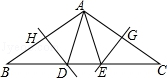 1.(2016•威海)如图,在△ABC中,∠B=∠C=36°,AB的垂直平分线交BC于点D,交AB于点H,AC的垂直平分线交BC于点E,交AC于点G,连接AD,AE,则下列结论错误的是()