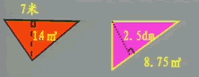 (2)一块三角形木板的底为7分米,高比底少2分米,这块木板的面积是( )平方分米。