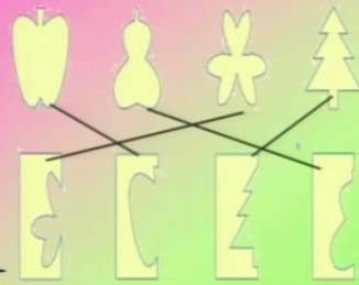 4.下面的图形各是从哪张纸上剪下来的?连一连。