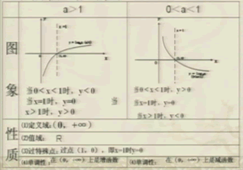 一般地,对数函数y=logax在a>1及0<a<1这两种情况下的图象和性质如下表所示:
