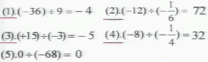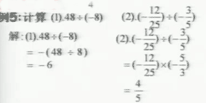 两数相除,同号得正,异号得负,并把绝对值相除,除以任何一个不等于0的数,都得0