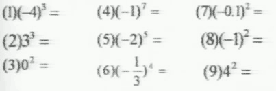 (1)负数的乘方,在书写时一定要把整个负数(连同符号),用小括号括起来,这也是辨认底数的方法;