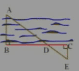 例4 如图,为了估算河的宽度,我们可以在河对岸选定一个目标作为点A,再在河的这一边选点B和C,使AB⊥BC,然后,再选点F,使EC⊥BC,用视线确定BC和AE的交点D