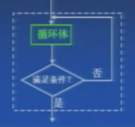 在执行了一次循环体后,对条件进行判断,如果条件不满足,就继续执行循环体,直到条件满足时终止循环。