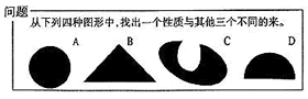 不过,也许有人会选择图形C。因为非对称性图形只有C一个,所以会被认为与其他图形不同。确实如此,这也是正确答案。答A也是可以的。因为A是惟一没有角的图形,所以A也是正确答案。那么,D又怎么样呢?这是惟一一个由直线与曲线构成的图形,因此D也是正确答案。换句话说,由于看图形的角度不同,四种答案全部正确。