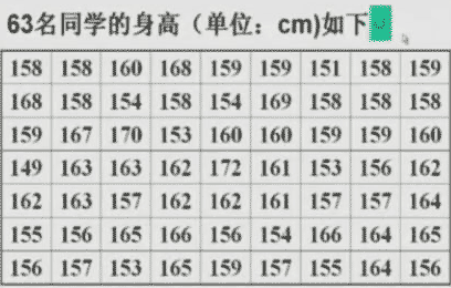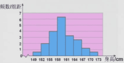 在此图中,是用长方形的直条来描述数据,横轴表示身高范围,可以看出这些数据共同的8个组。每个小组的两个端点之间的距离是3cm。
