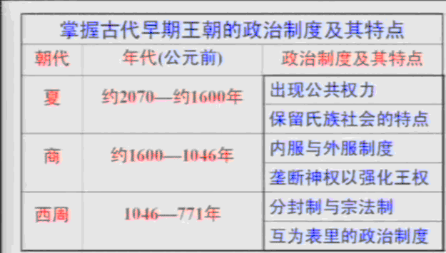 古代早王朝的政治制度及其特点:
