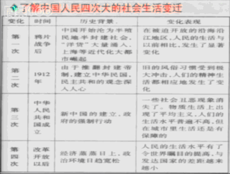 (1)列强的侵略,西方生活方式和习俗(文化影响)的传入和影响(根本原因在于西方文明的先进性)