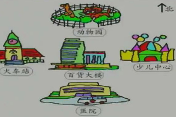根据下面的平面图,说说百货大楼的东、西、南、北各是什么?