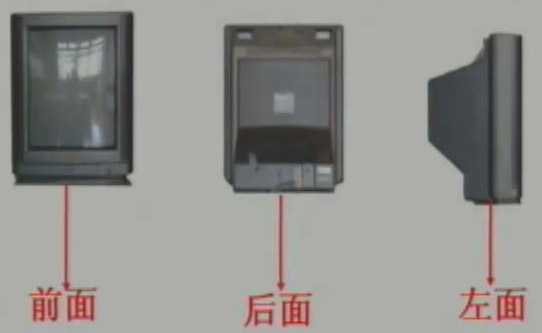 2.下面的电视机图分别是在电视机的哪个位置看到的?