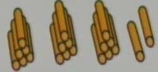 一共有9根小棒,每4个一堆,可以分(2)堆,余下(1)根