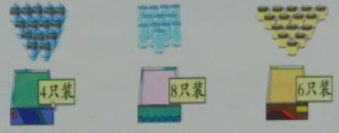 三种杯子各能装满几盒?各剩几只?
