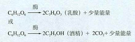 无论是分解成酒精和二氧化碳或者是转化成乳酸,无氧呼吸都只在第一阶段释放出少量的能量,生成少量ATP。葡萄糖分子中的大部分能量则存留在酒精或乳酸中。