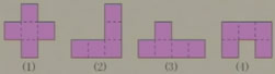 2、下面各图形,如果沿虚线折叠,哪几个可以折成无盖的立方体?折一折,试一试。