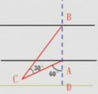 例1.一次数学实践活动的内容是测量河宽,如图,即测量A,B之间的距离。同学们想出了许多方法,其中小聪的方法是:从点A出发,沿着与直线AB成60°角的AC方向前进至C,在C处测得∠C=30°,量出AC的长,它就是河的宽度,这个方法正确吗?请说明理由。