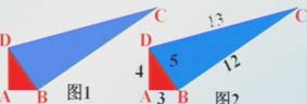 例3:一个零件的形状如图1所示,按规定这个零件中∠A和∠DBC都应为直角。个人师傅量得这个零件各边尺寸如图2所示,这个零件符合要求吗?