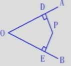 例3:如图,已知P是∠AOB内部的一点,PD⊥OA,PE⊥OB,D,E分别是垂足,且PD=PE,则点P在∠AOB的平分线上,请说明理由。