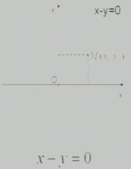 位于第一、三象限的角平分线的方程是x-y=0.即:如果点M(x0,y0)是这条直线上的任意一点,它到两坐标轴的距离一定相等,从而x0=y0,那么它的坐标(x0,y0)是方程x-y=0的解;反之,如果(x0,y0)是方程x-y=0的解,即x0=y0,那么以这个解为坐标的点到两轴的距离相等,它一定在这条平分线上(如右图)