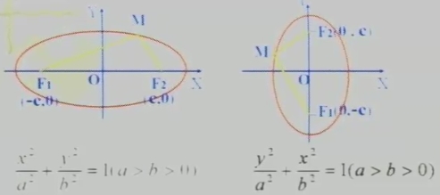(4)椭圆的标准方程中,x2与y2的分母哪一个大,则焦点在哪一个轴上。