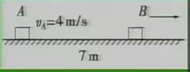 如图所示,A,B两物体相距x=7m时,A在水平拉力和摩擦力作用下,正以VA=4m/s的速度向右匀速运动,而物体B此时正以VB=10m/s的初速度向右匀减速运动,加速度a=-2m/s2,则A追上B所经历的时间是( A)