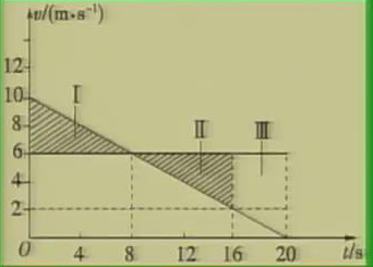 (4)汽车停止时两者距离由Ⅲ的面积决定,为20m.