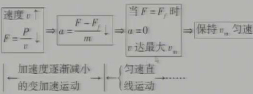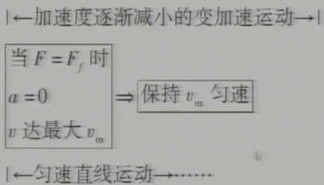 所以机车达最大速度时,加速度a=0,牵引力F=Ff,P=Fv=FfVm,这一启动过程的P-t,v-t关系如图所示,其中Vm=P、Ff