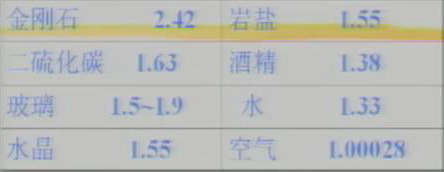 几种介质的折射率