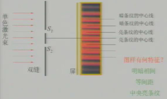 2.单色光的相干的特征:等宽度等间距的明暗条纹