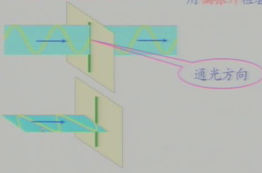2.通过第一个偏振片的偏振光再通过第二个偏振片(称为检偏器)时,如果两个偏振片的透振方向平行,那么,通过第一个偏振光的振动方向跟第二个偏振片的透振方向平行,投射的强度最大。