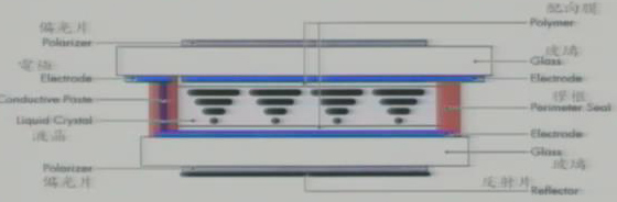 液晶显示器是一个由上下两片导电玻璃制成的液晶盒,盒内充有液晶,四周用密封材料--胶框密封,盒的两个外侧贴有偏光片。
