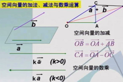 推论:如果L为经过已知点A且平行已知非零向量(→,a)的直线,那么对任一点o,点P在直线L上充要条件是存在实数t,满足等式(→,OP)=(→,OA)+t(→,a)其中向量叫做直线的方向向量。