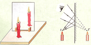 在上面的实验中,平面镜后面并没有点燃的蜡烛,但是,我们却看到平面镜后面好像有烛焰。这是为什么?